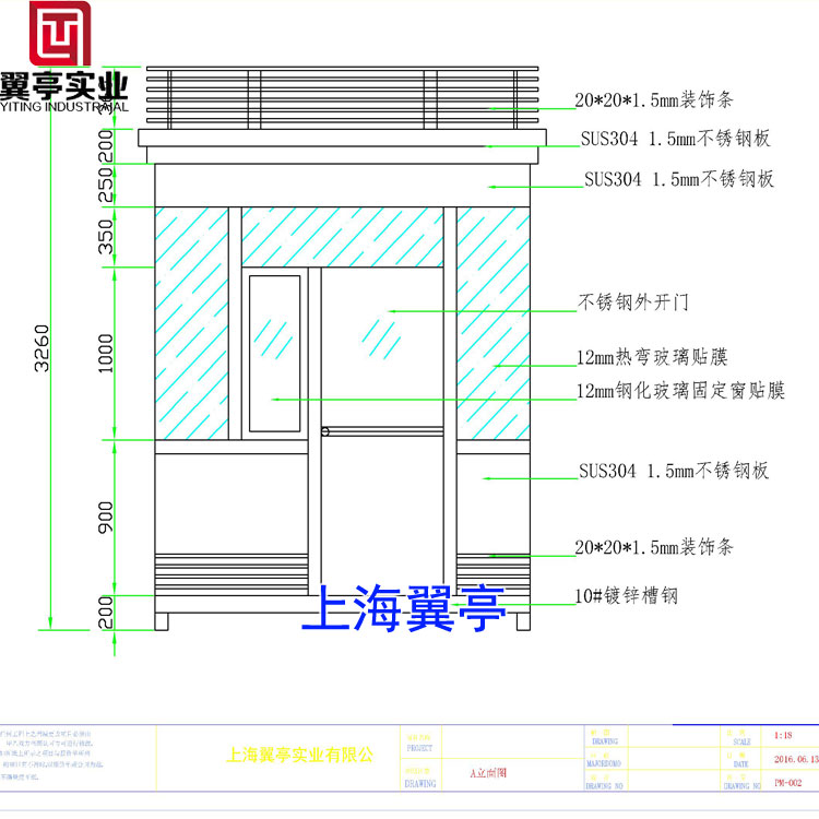 YT-B02為上海徐房地產公司定制的辦公樓保安亭、由于辦公樓位于上海市市區、要讓整個崗亭與辦公樓相互襯托、崗亭屋面我們結合了辦公樓的建筑風格采用的是兩層頂、在崗亭上面安裝空調外機的地方我們還特別設計了不銹鋼裝飾條、使整個崗亭更加的美觀和大氣不銹鋼崗亭工藝介紹: