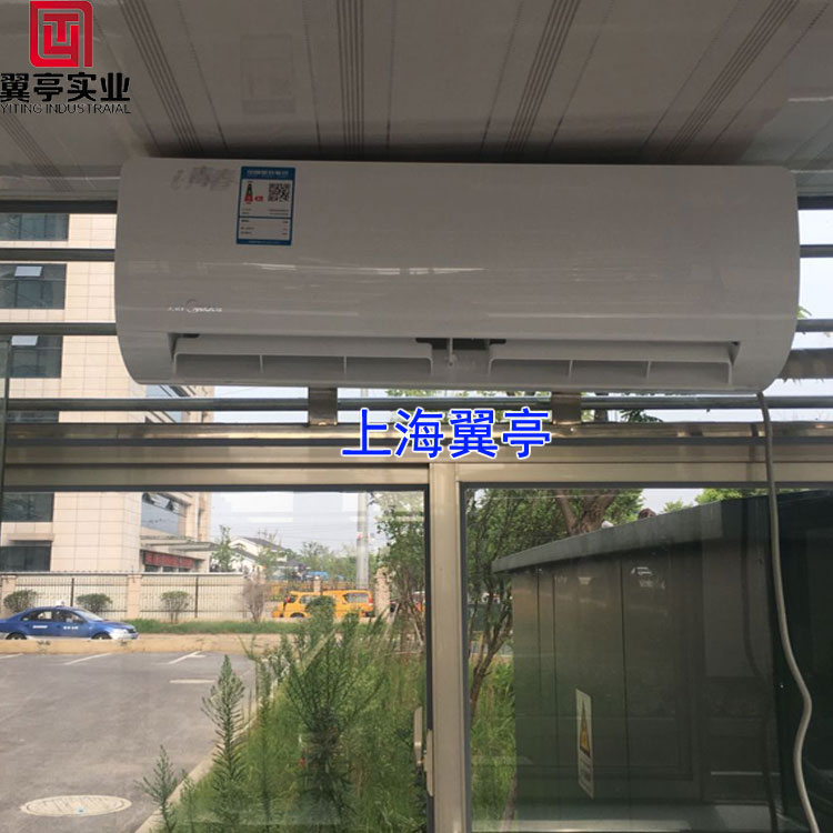 YT-B06不銹鋼崗亭采用304拉絲不銹鋼制作而成、經久耐用、室內配套設施齊全、空調、燈飾、電源、插座、燈飾、方便實用!