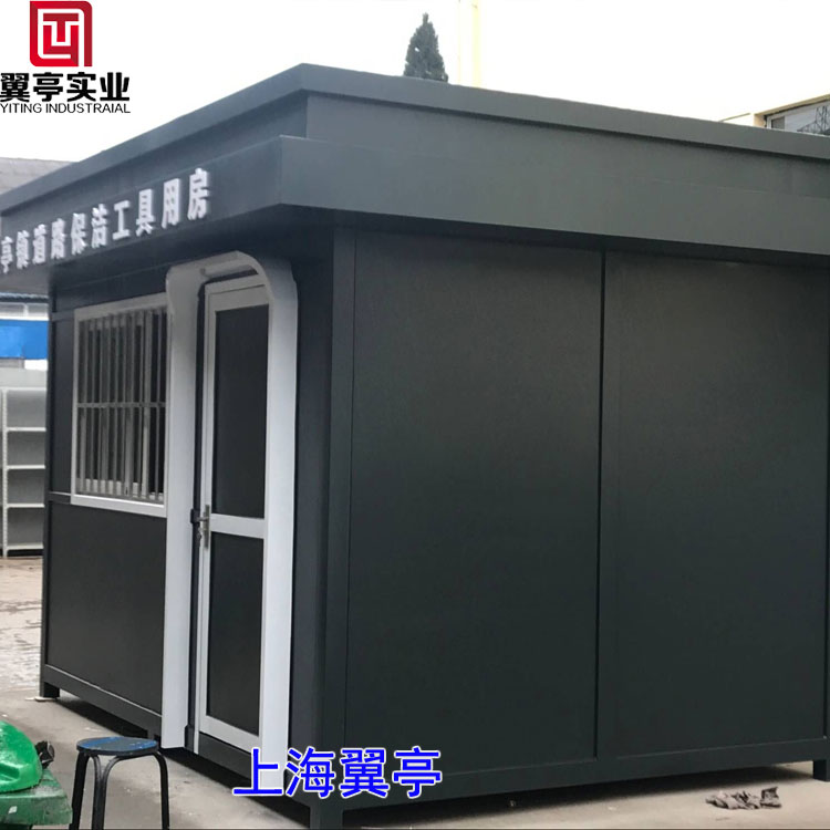 保潔工具房整體采用上等鍍鋅板噴墨綠色汽車專用氟碳漆、安裝在臨近車多的公路邊耐臟、也容易日常打理、門框用弧型加以點綴既美觀、又大氣!