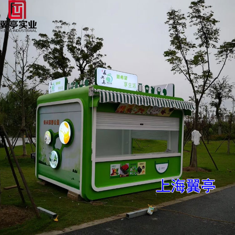 產品介紹:上海翼亭崗亭廠家定制的售貨亭款式精美大氣、我們的YT-S32售貨亭采用果綠色的氟碳漆,果綠色看上去很清新,綠色還會有大自然的感覺。售貨亭更是搭配了白色的線框加以點綴,讓人越看越喜歡