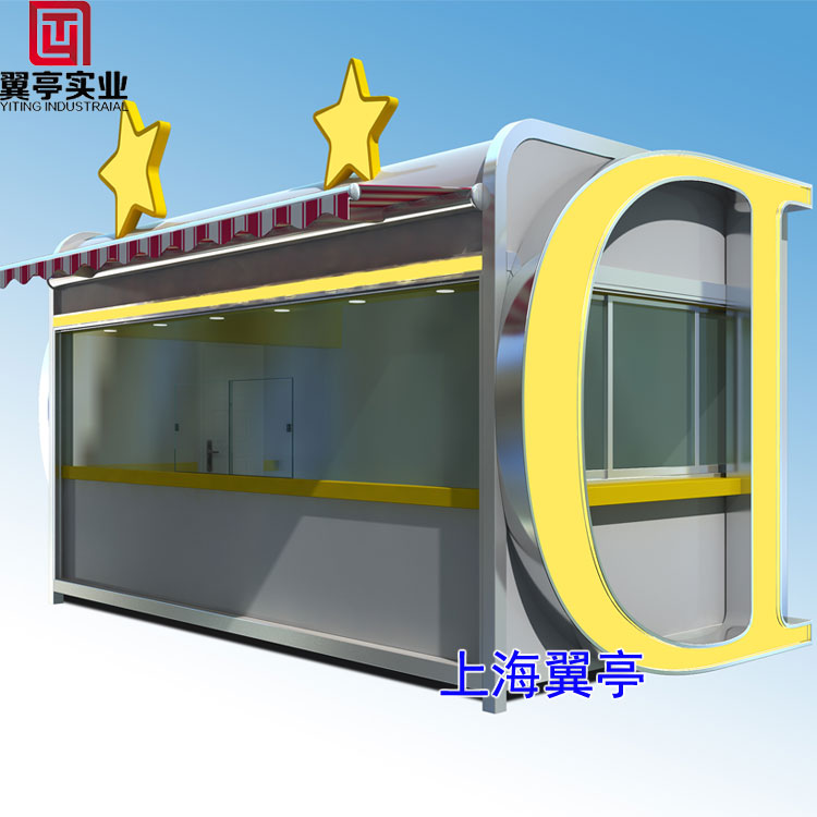 YT-S01售貨亭整個售貨亭鋼結構為主體、牢固耐用、外掛2mm鍍鋅噴氟碳漆、色彩靚麗、售貨亭兩端搭配LED燈、 為在工作的人員帶來方便。